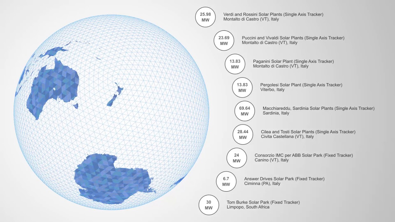 The Comal "Sun Hunter 18AB" horizontal single-axis system is easily adaptable, thanks to its flexibility characteristics, to the configuration of various photovoltaic fields, to achieve the goal of maximizing the power that each field can generate. The use of trackers of different lengths and the ability to independently set each tracker's angles, even at the end of the back-tracking, allows you to achieve the above goal.